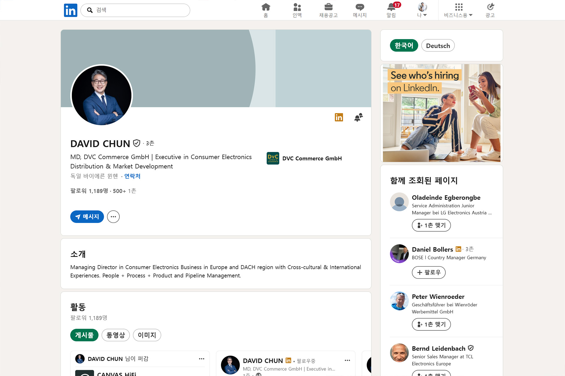 비즈니스 팀 프로필